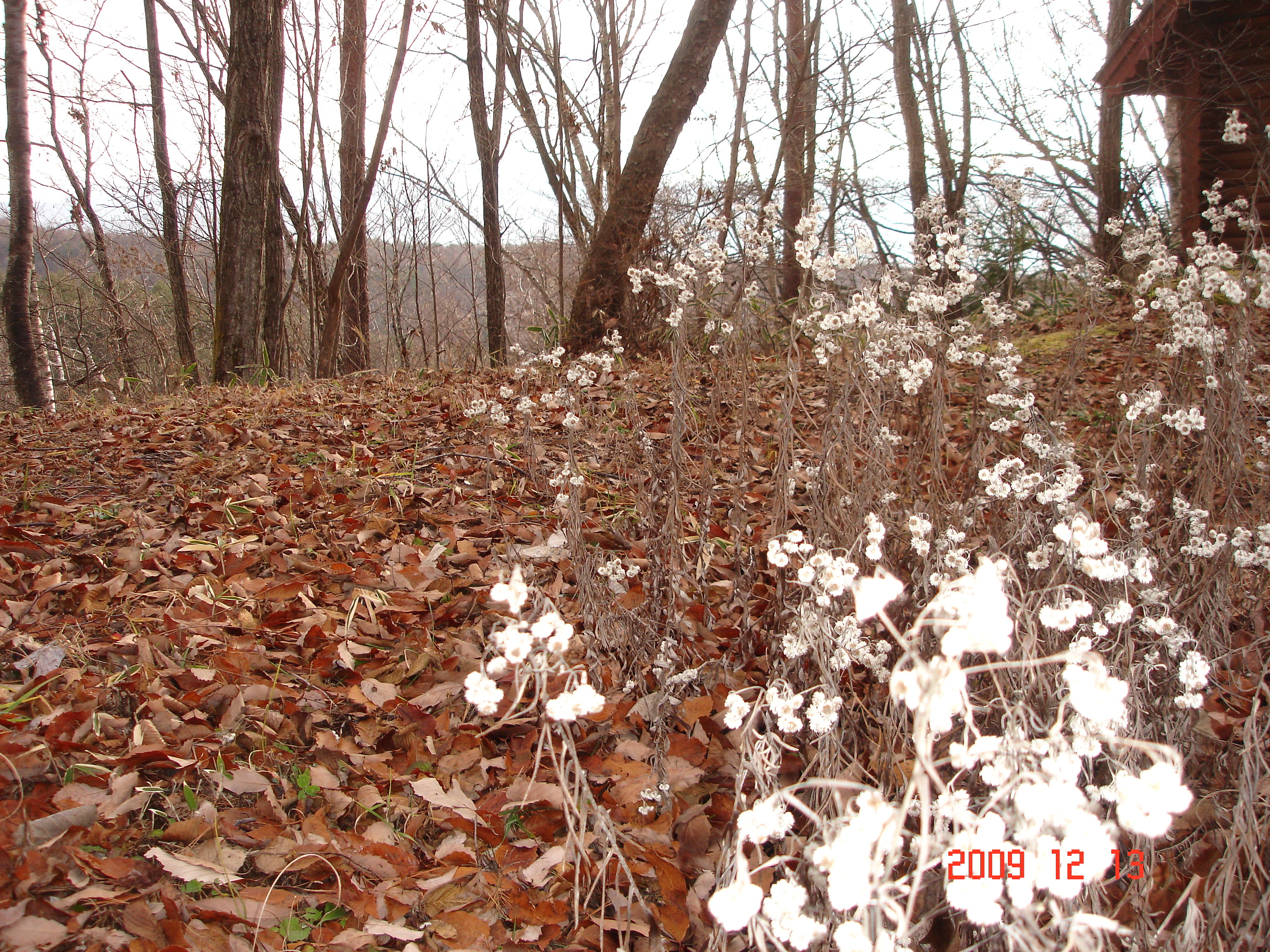 落ち葉に、白い可愛いお花など